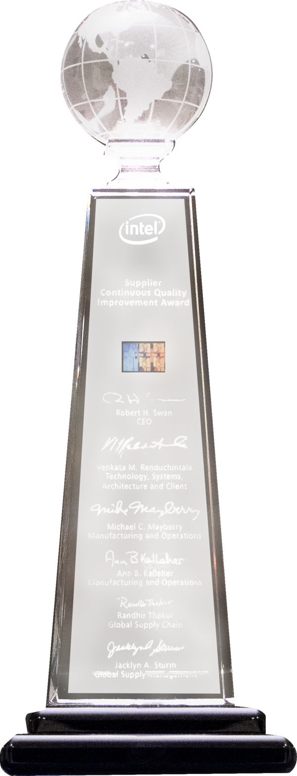 インテルコーポレーションの サプライヤー・コンテニュアス・クオリティー・インプルーブメント賞を受賞