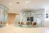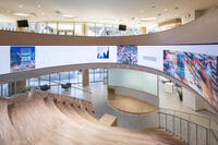 これらの取り組みを効果的に促進するため、参加人数・用途に合わせて分割可能なカンファレンスルーム、自由で創造性あふれる活動が行えるミーティングルーム、大小様々な懇親会、コワーキングに対応するスペース、社内外とのコラボレーションを推進するオープンな情報発信スペースなど、様々な空間を備えています。