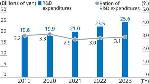 The main purposes of the research laboratories are to enhance competitive businesses, develop new products based on existing products and technologies, and conduct R&D aimed at creating new core businesses in areas with medium- and long-term promise. The R&D departments at each plant deal with improvements in production technologies and applied product research.